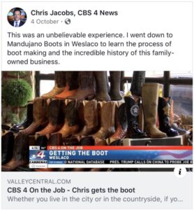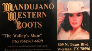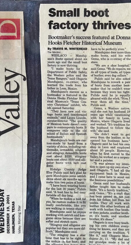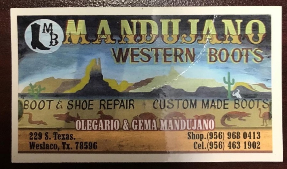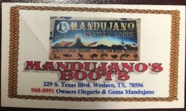 Mandujano Bootmaker is exhibited in the Museum of South Texas History and RGV bootmakers.