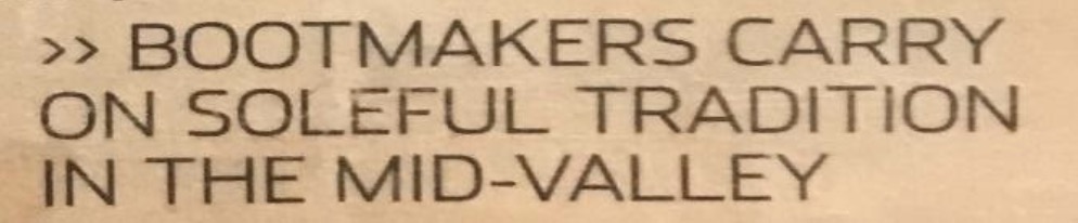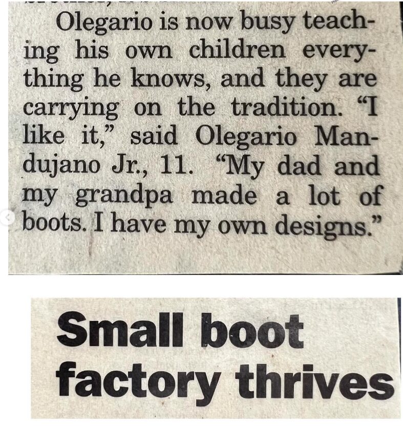As Olegario Mandujano recovers, Andres Mandujano is interviewed and an article titled “BOOTMAKERS CARRY ON SOLEFUL TRADITION IN THE MID-VALLEY” runs in the newspaper The Monitor.