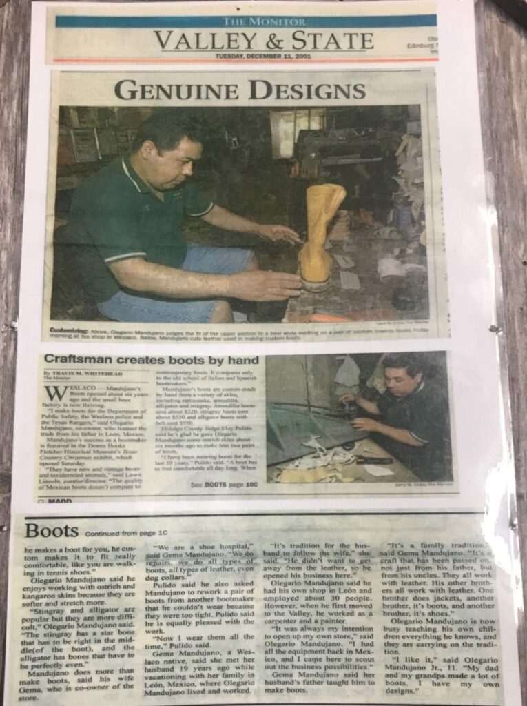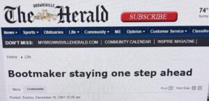 Olegario Mandujano is interviewed a second time and an article titled “Bootmaker stays one step ahead” runs in the newspaper The Brownsville Herald.