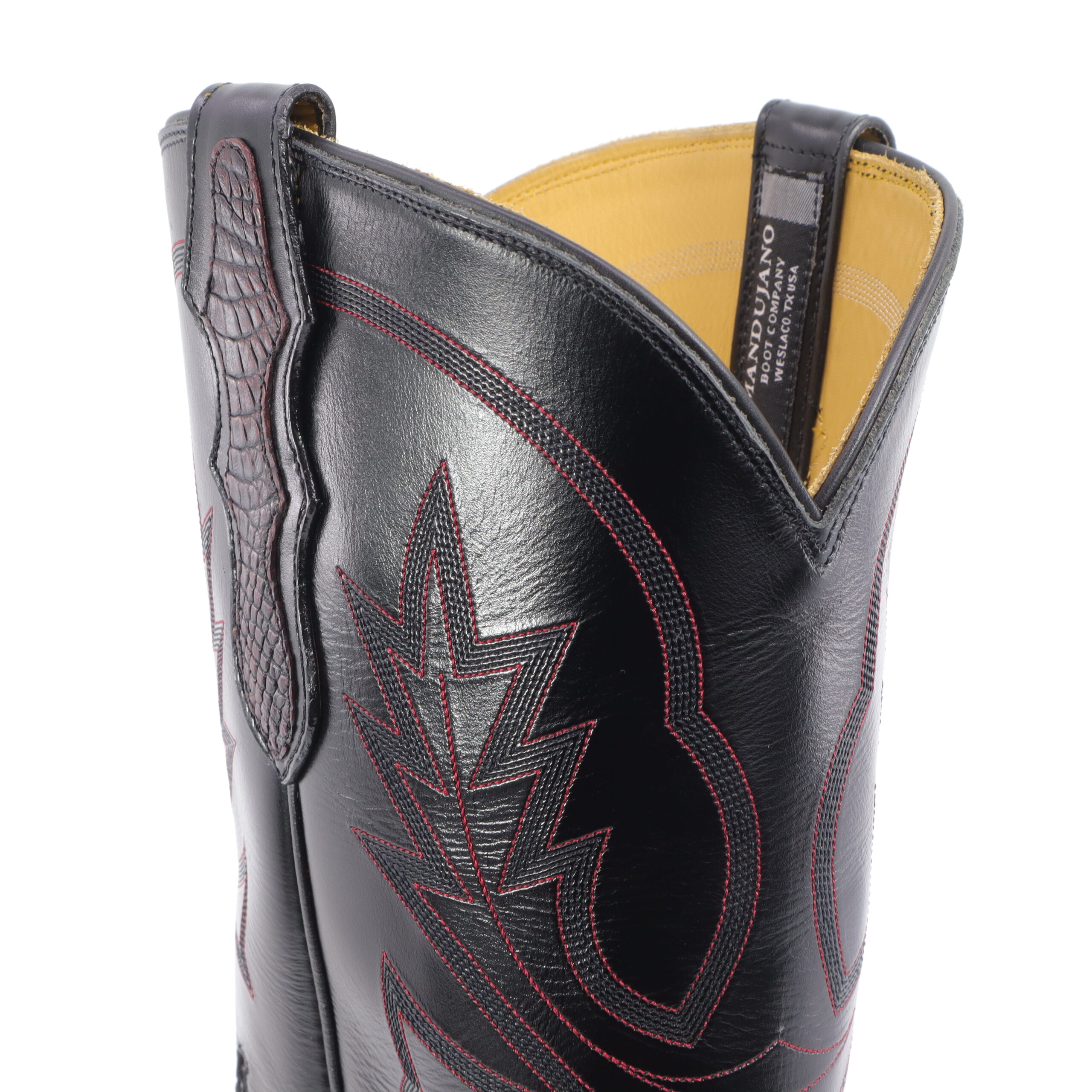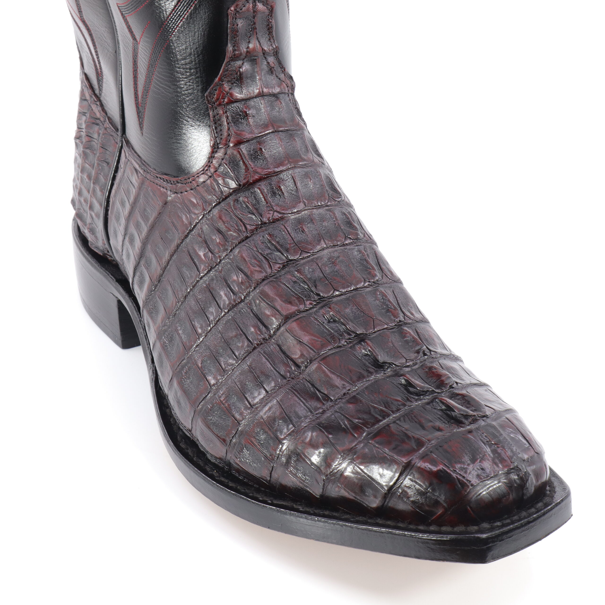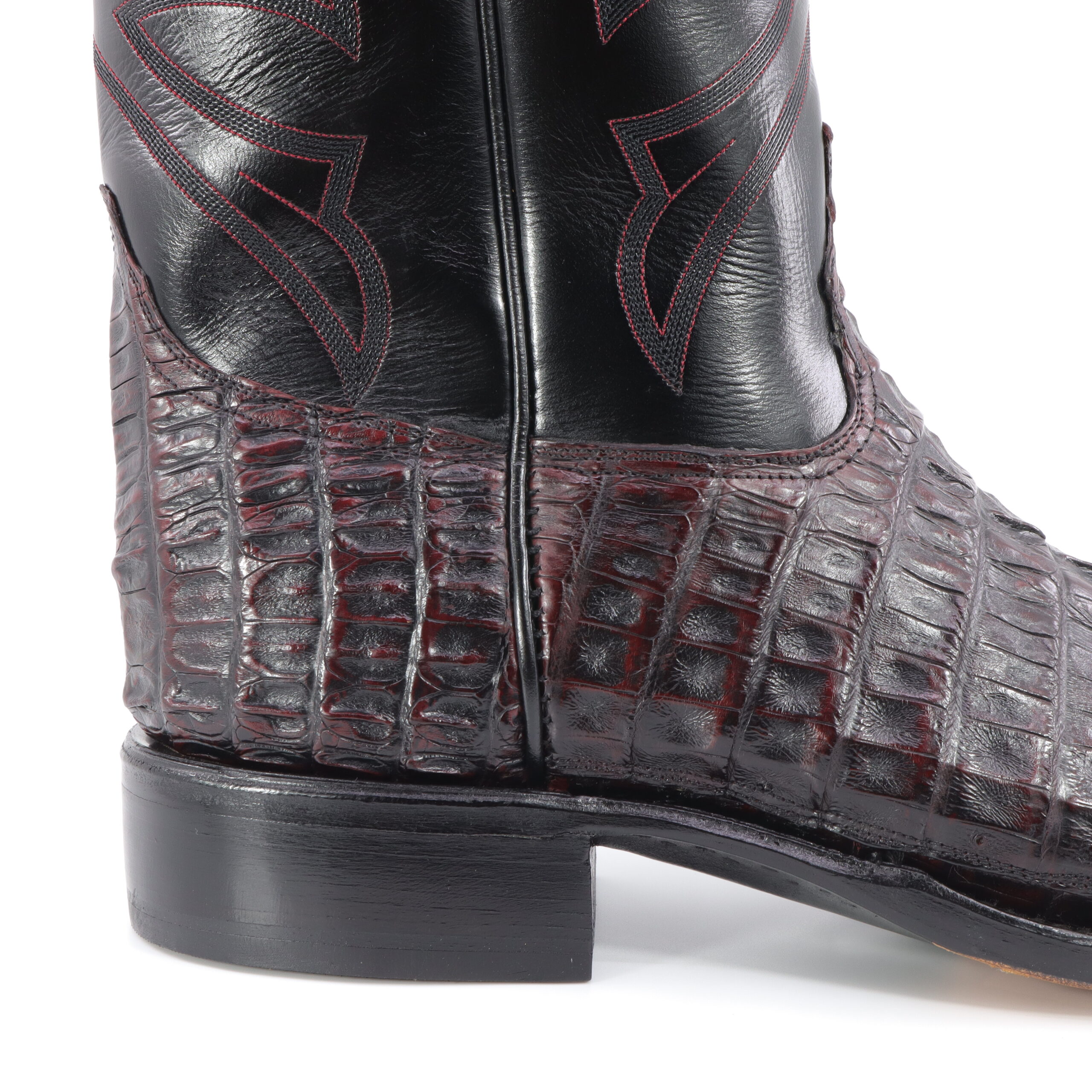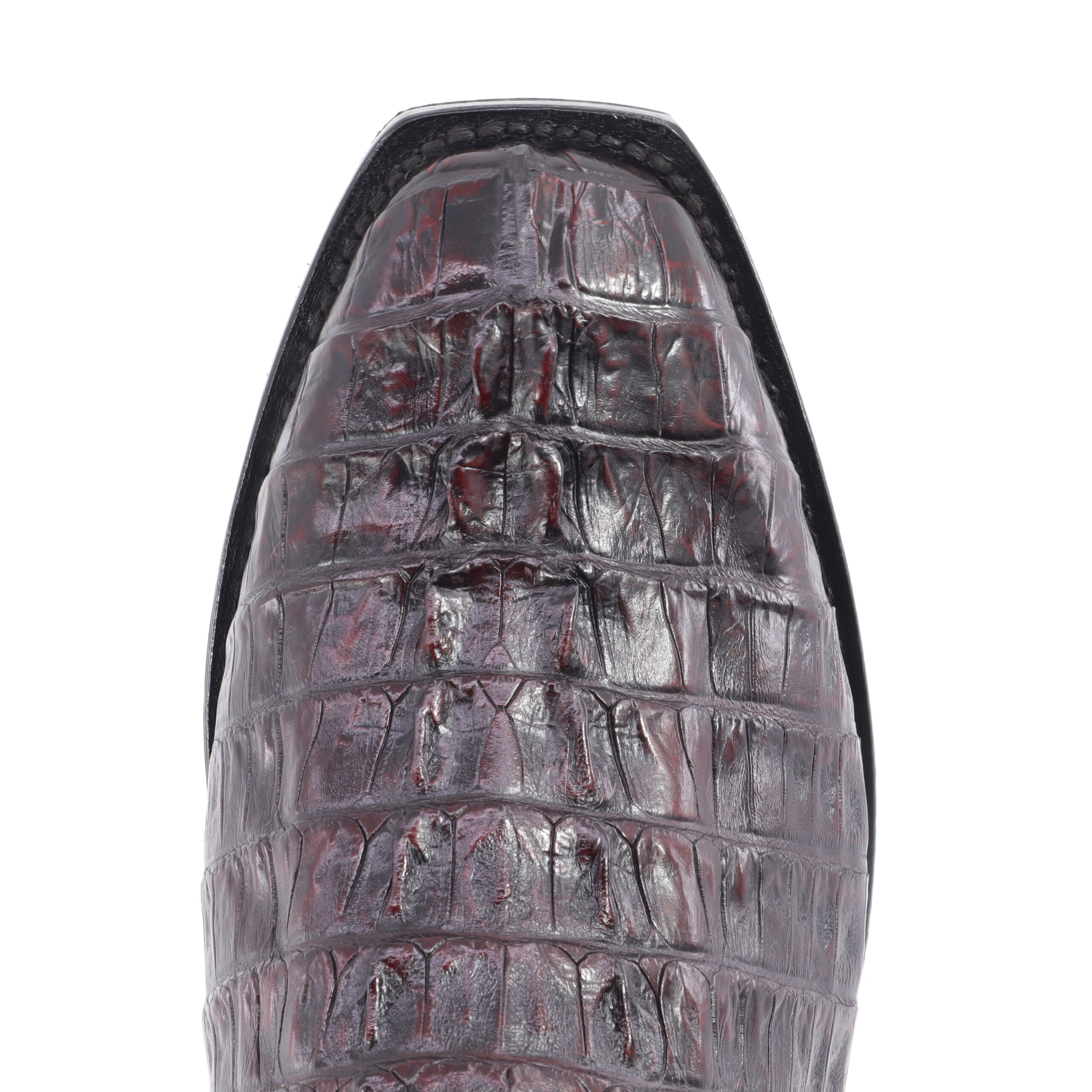 With their rugged Hornback scales and handcrafted finish, these boots deliver both durability and elegance. Versatile, reliable and handcrafted for lasting wear, this pair offers an elevated style that transitions seamlessly from everyday use to special occasions. The shaft is constructed with Grade A Premium Goat skin and features a 6-row stitching design exotic outlay pull straps. The premium cushioned insole offers lasting comfort and support and its single stitched welt construction around the leather outsole guarantees durability for extended wear. Lemonwood pegging construction. Imported Leather insole and outsole. Proudly custom made and designed in Weslaco, Texas.