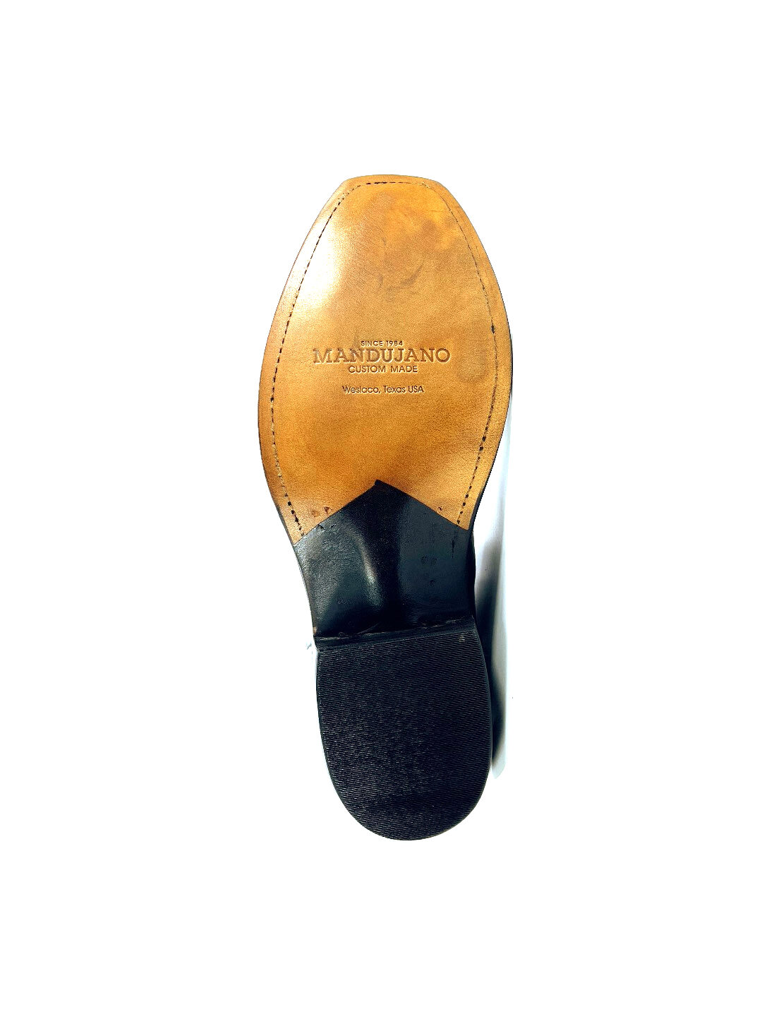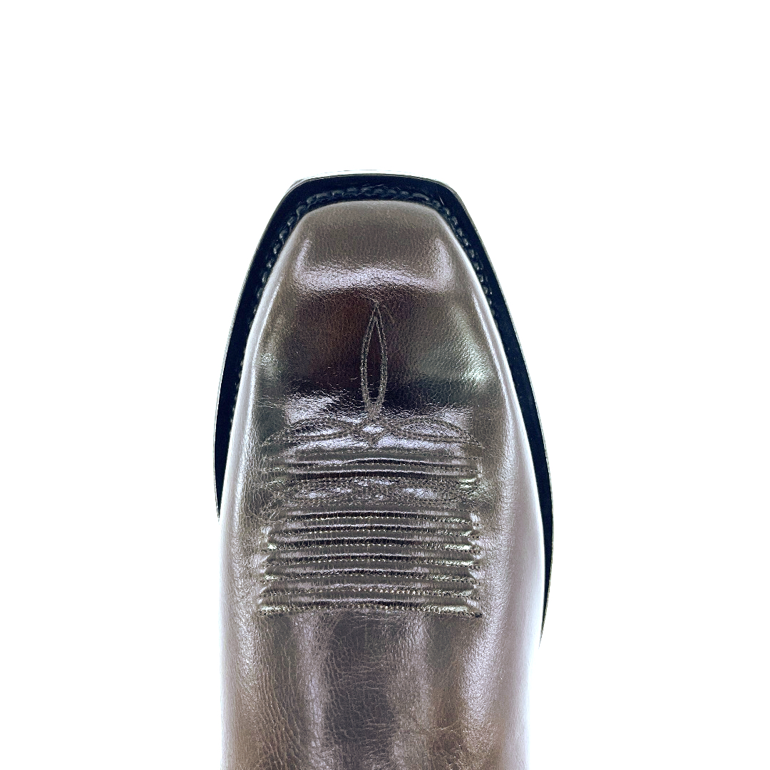 Standing at 13’inch tall, with a timeless classic finish and a high gloss shine. These Nicotine Indian Goat boots are complimented with a well-centered medallion stitching design on the vamp, a comfortable walking heel and classic French toe. The shaft is complimented with a hand driven cording design and outlay pull straps. The premium cushioned insole offers lasting comfort and support and its single stitch welt around the leather outsole guarantees durability for extended wear. Lemonwood pegging construction. Imported Leather insole and outsole. Proudly custom made and designed in Weslaco, Texas.