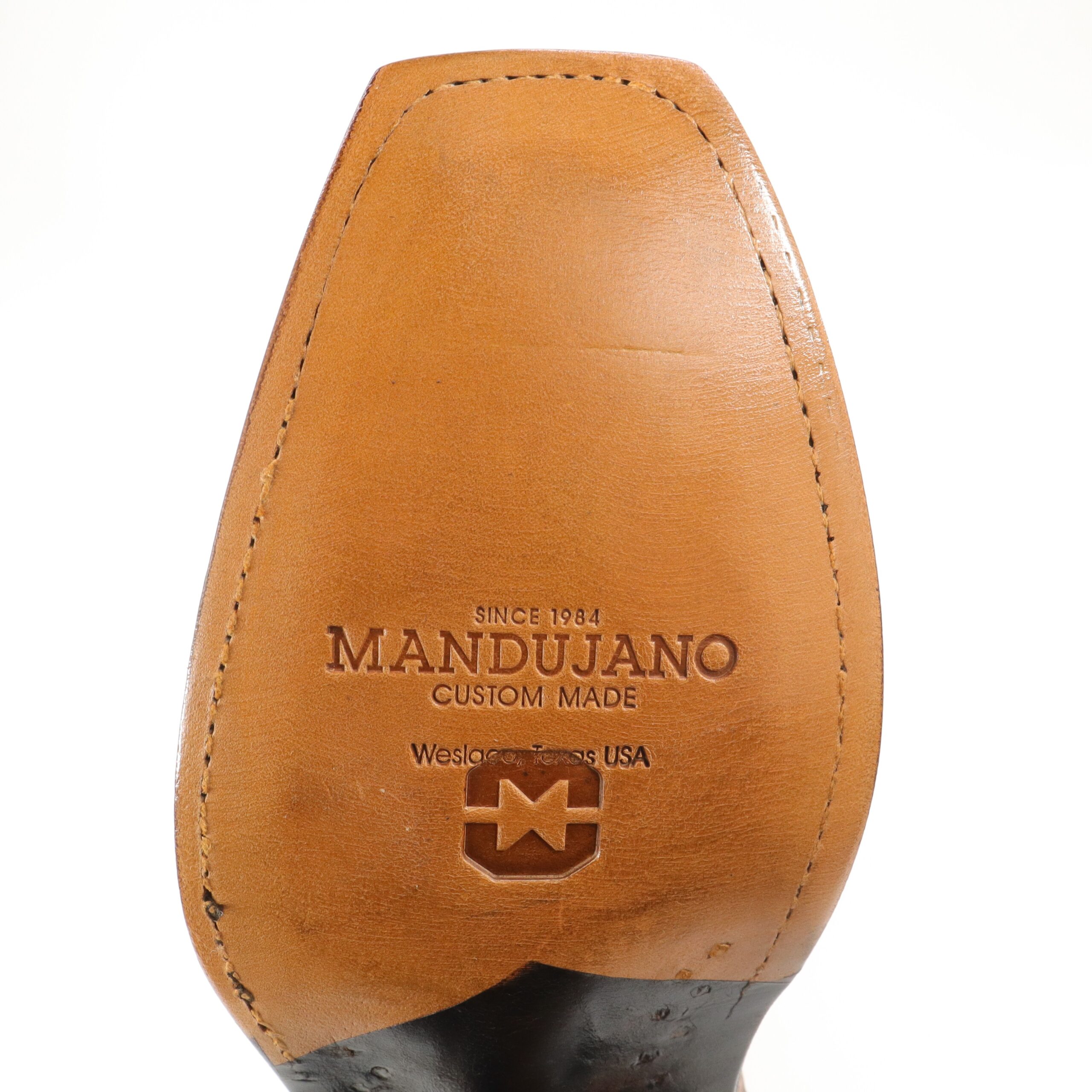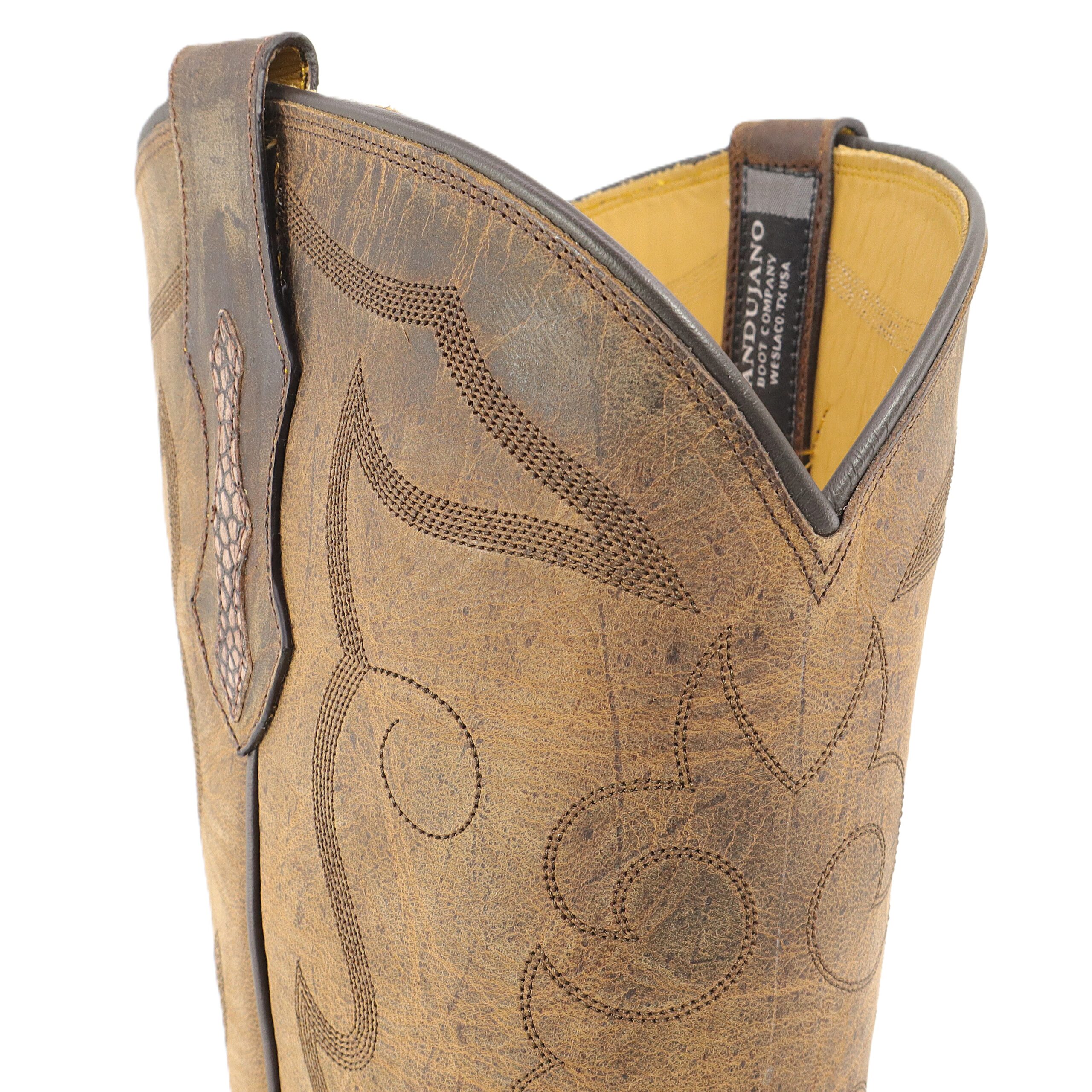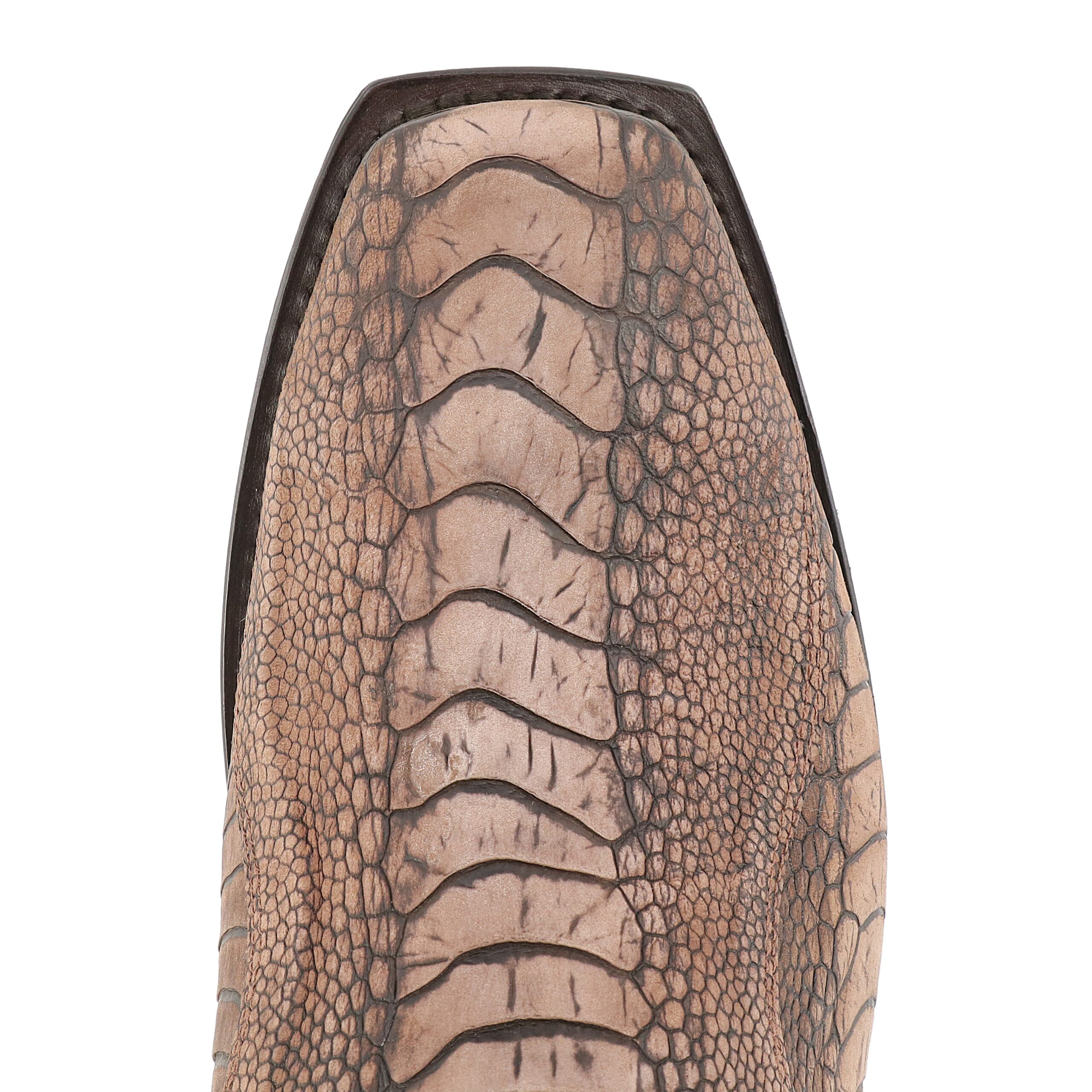 Known for its bold, scale-like pattern, ostrich leg delivers durability with a striking exotic look. This pair is blending rugged toughness with refined craftsmanship. The shaft is constructed with Grade A Premium Goat skin, featuring a well centered Texas monogram, exotic overlay pulls straps and personalized initials “T B.” Due to the authentic nature of the Ostrich, shape and markings will vary, making each boot completely unique and unlike any other. The premium cushioned insole offers lasting comfort and support. Single stitched welt construction around the leather outsole guarantees durability for extended wear. Lemonwood pegging construction. Imported leather soles. Proudly Custom Handmade in Weslaco, Texas.