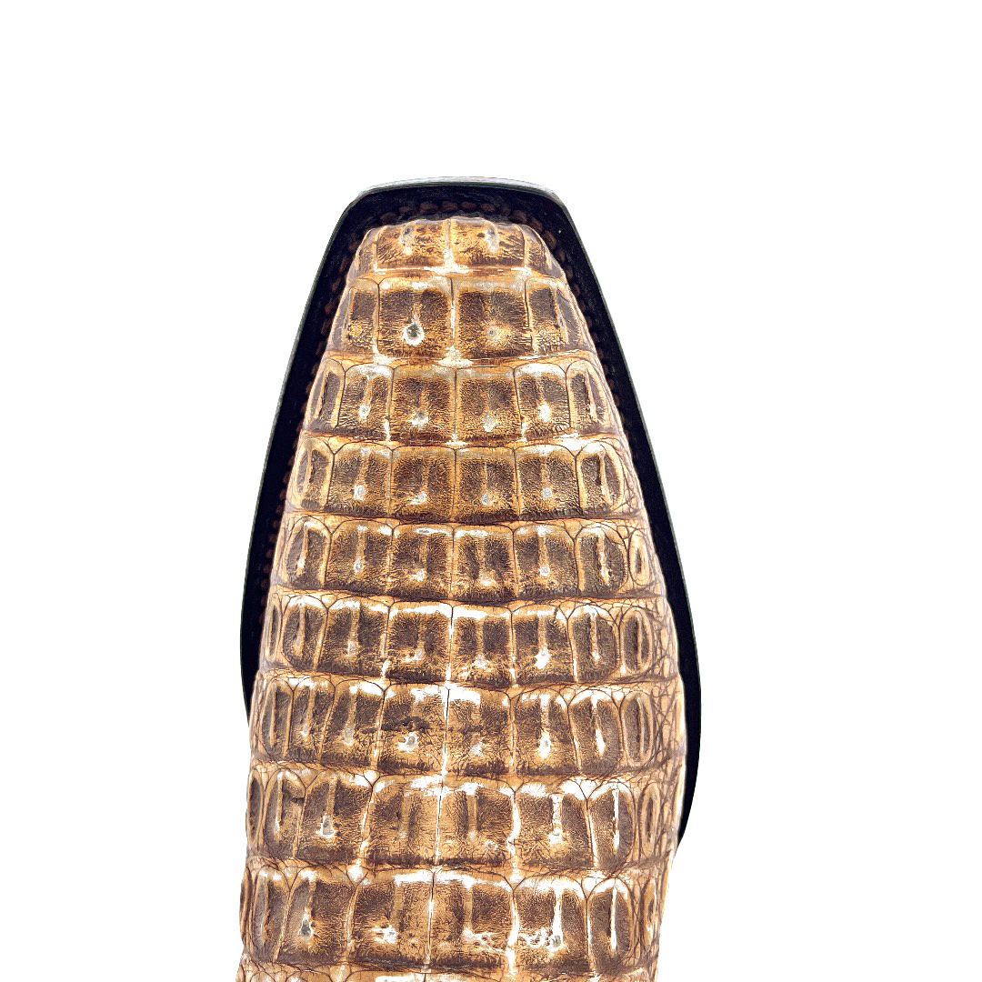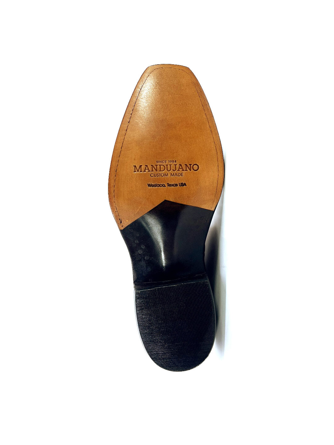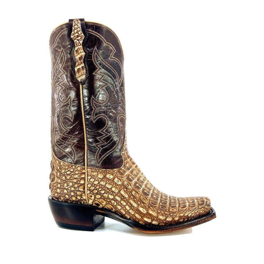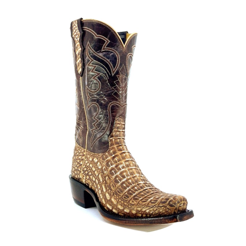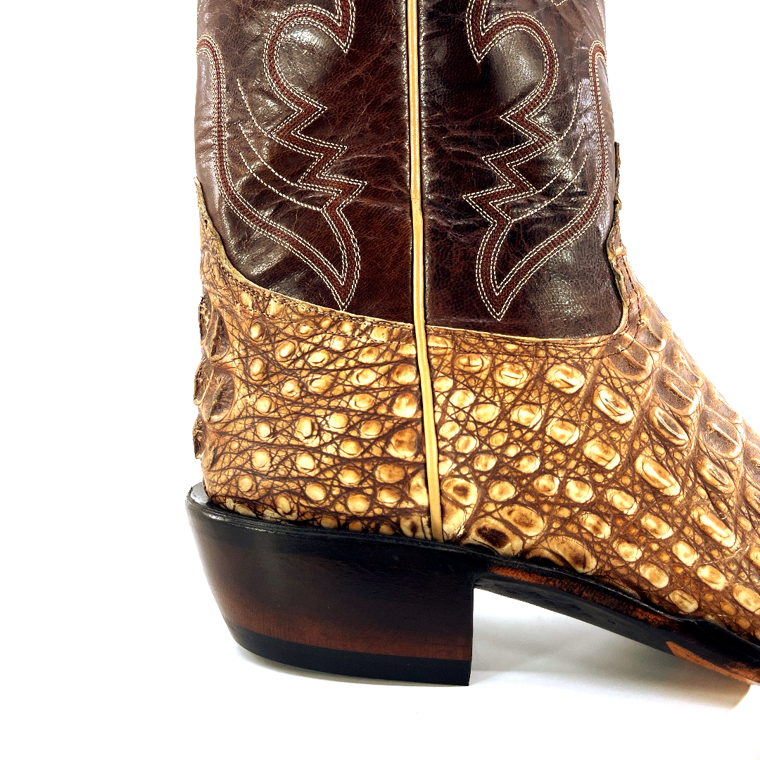 Sitting 13’inch tall, with a timeless classic finish, this South American Caiman Hornback boot is complimented with a comfortable walking heel and a classic western toe. The shaft is constructed with Grade A Premium Goat skin and features a 6-row stitching design, exotic initials for a personalized touch and outlay pull straps. The premium cushioned insole offers lasting comfort and support and its single stitched welt construction around the leather outsole guarantees durability for extended wear. Lemonwood pegging construction. Imported Leather insole and outsole. Proudly custom made and designed in Weslaco, Texas.